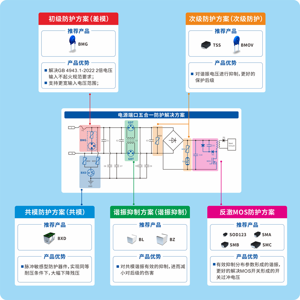 ▼看点一:电源端口五合一防护解决方案