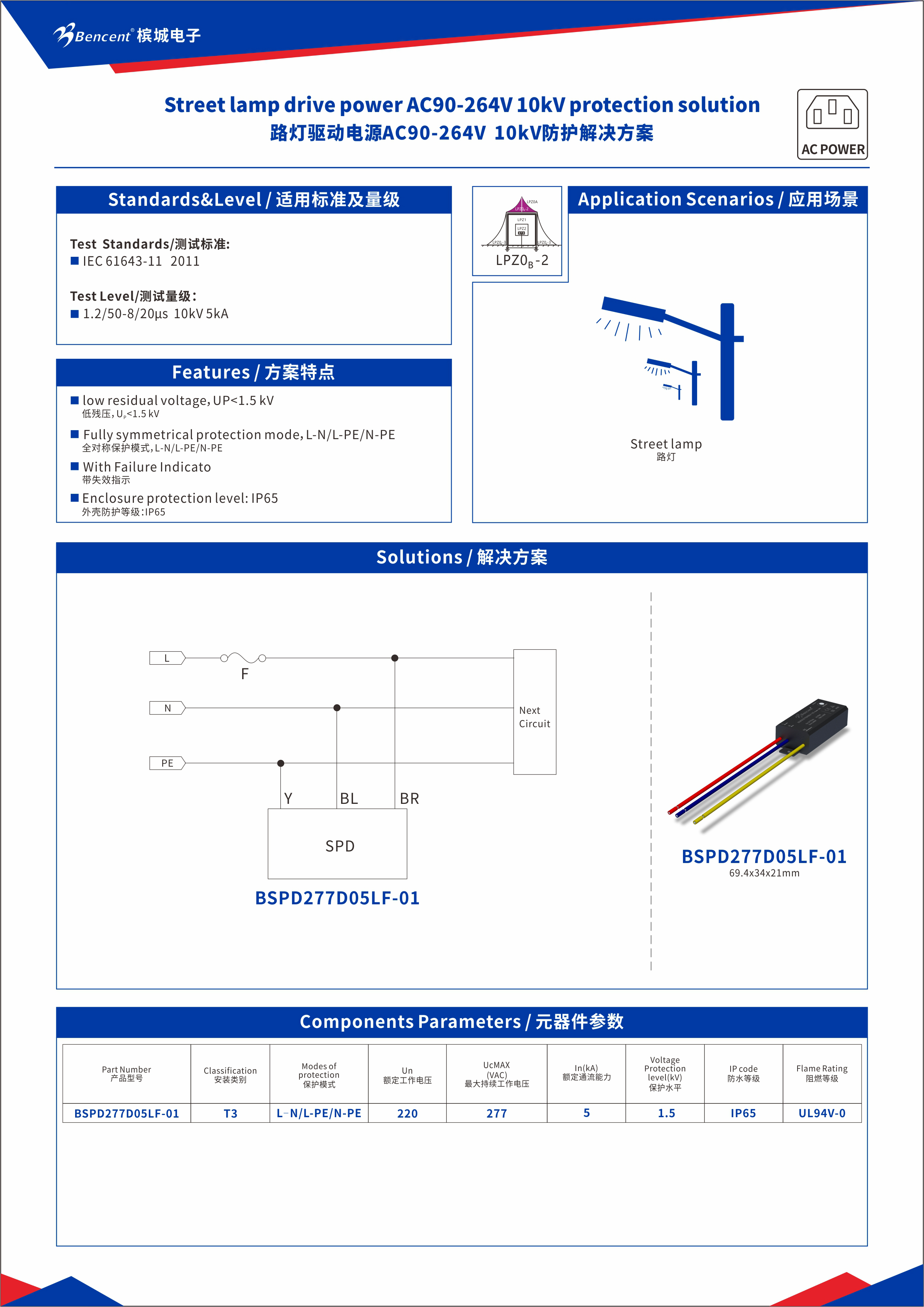 ▚ 外置式路灯驱动电源防雷模块BSPD277D05LF系列——提供高耐压低残压的防雷SPD