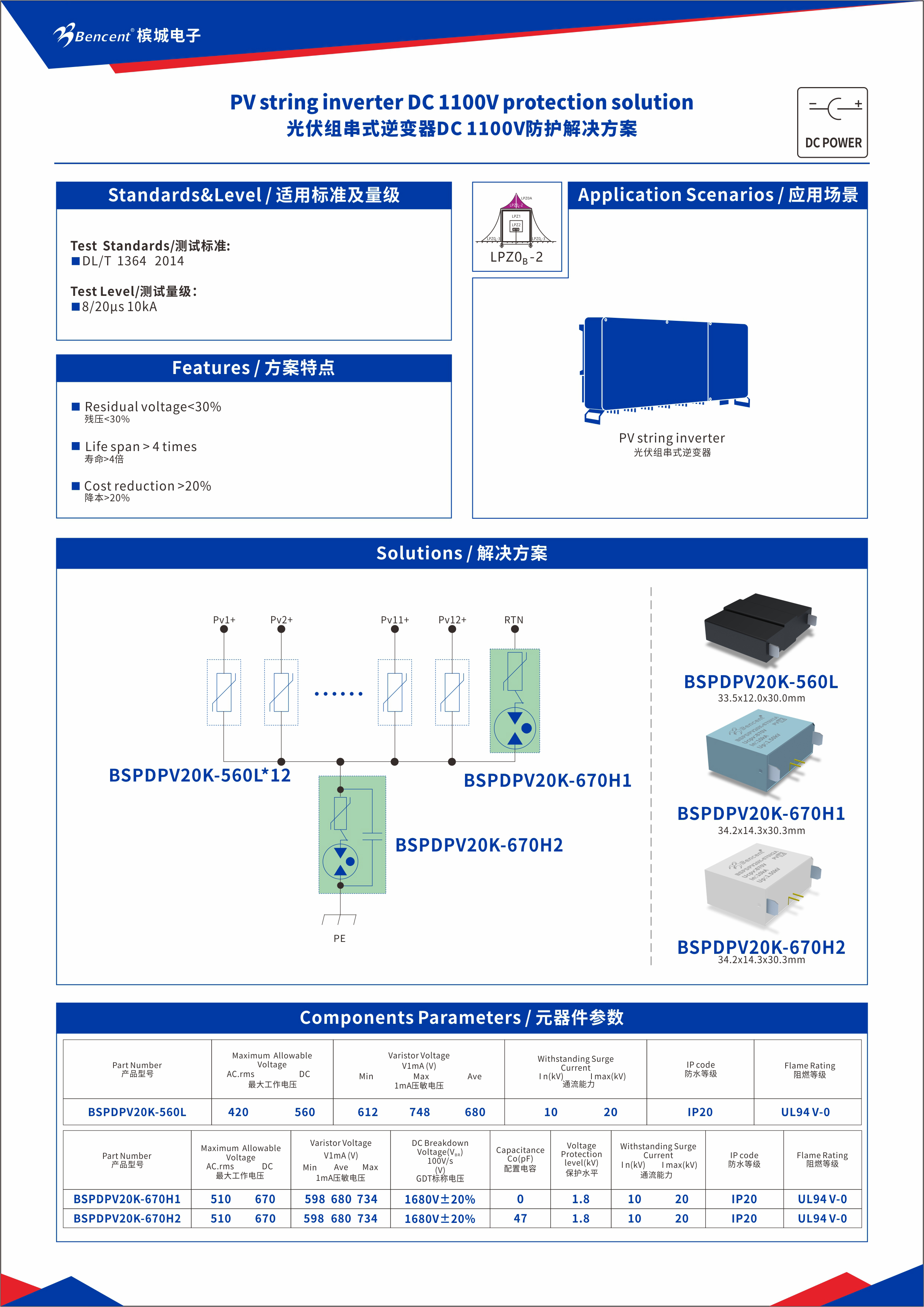 ▚ 光伏用DC接口解决方案BSPDPV20K系列——在降低成本的同时有效解决MOV的直流老化问题